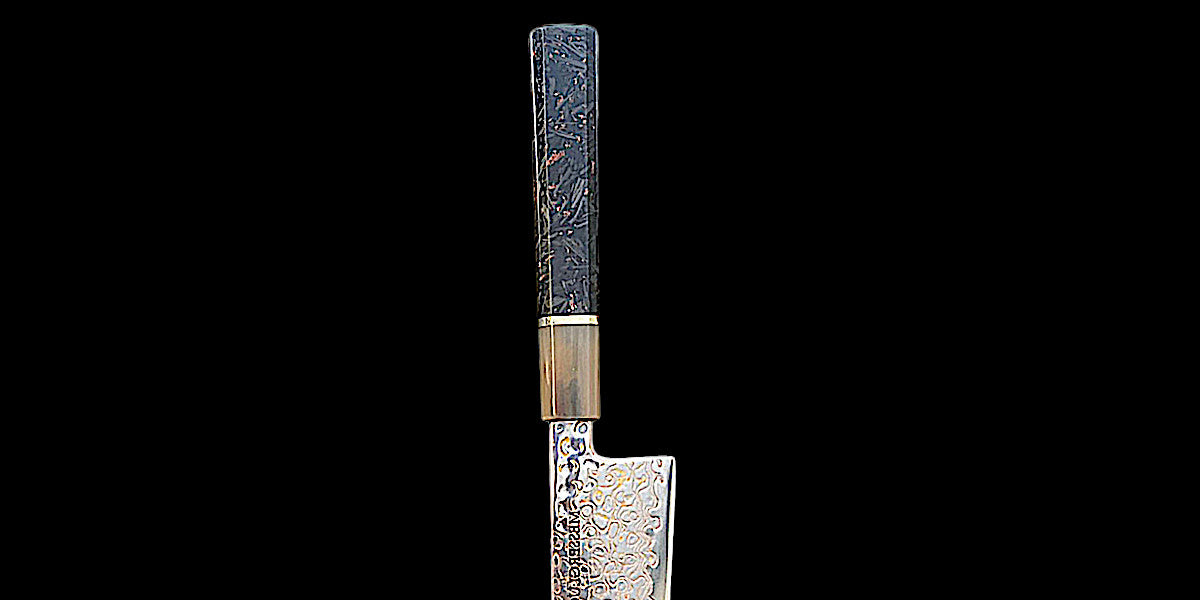 "KIRITSUKE GIGANT" Luxus-Damaststahl-Küchenmesser, VG-10 Kern, aus Kohlefaser und Kupfer